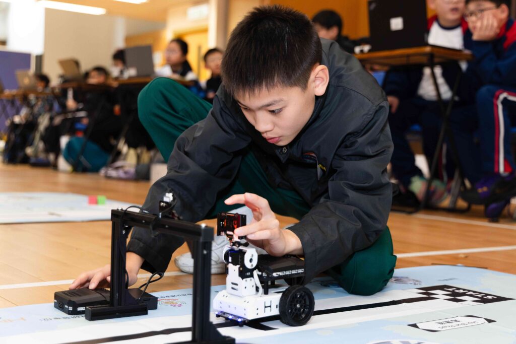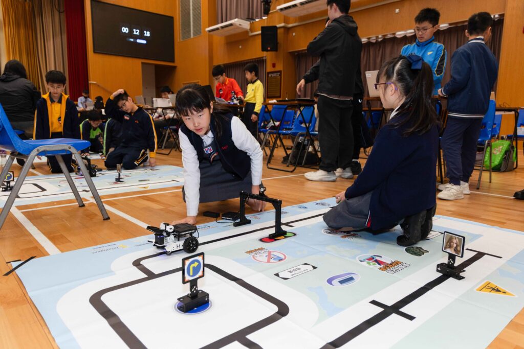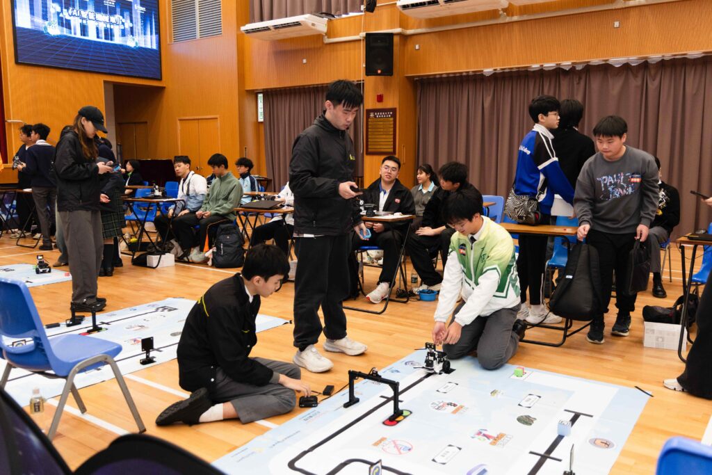 比賽當日,禮堂內多隊學生同時進行 AI 編程與測試,形成一個高度專注而具規模的 校本 AI 教學實況。學生以 AI Nova 智能機械車 為學習平台,在專業設計的比賽地圖上完成多項 AI 任務,從理解規則、設計邏輯、測試程式到即場優化,完整體驗 AI 學習由「概念」到「成果」的過程。